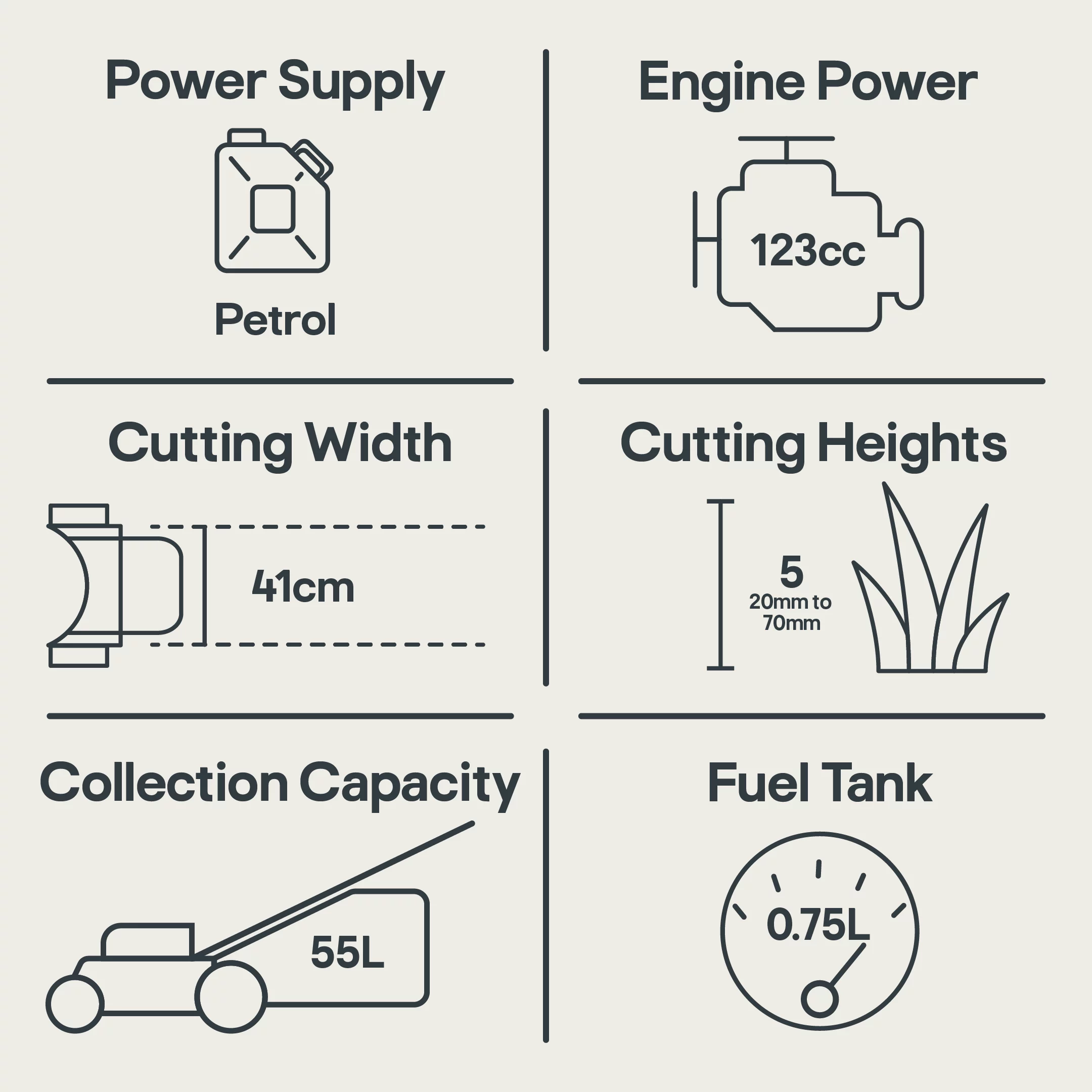 - 123cc 4-Stroke petrol engine