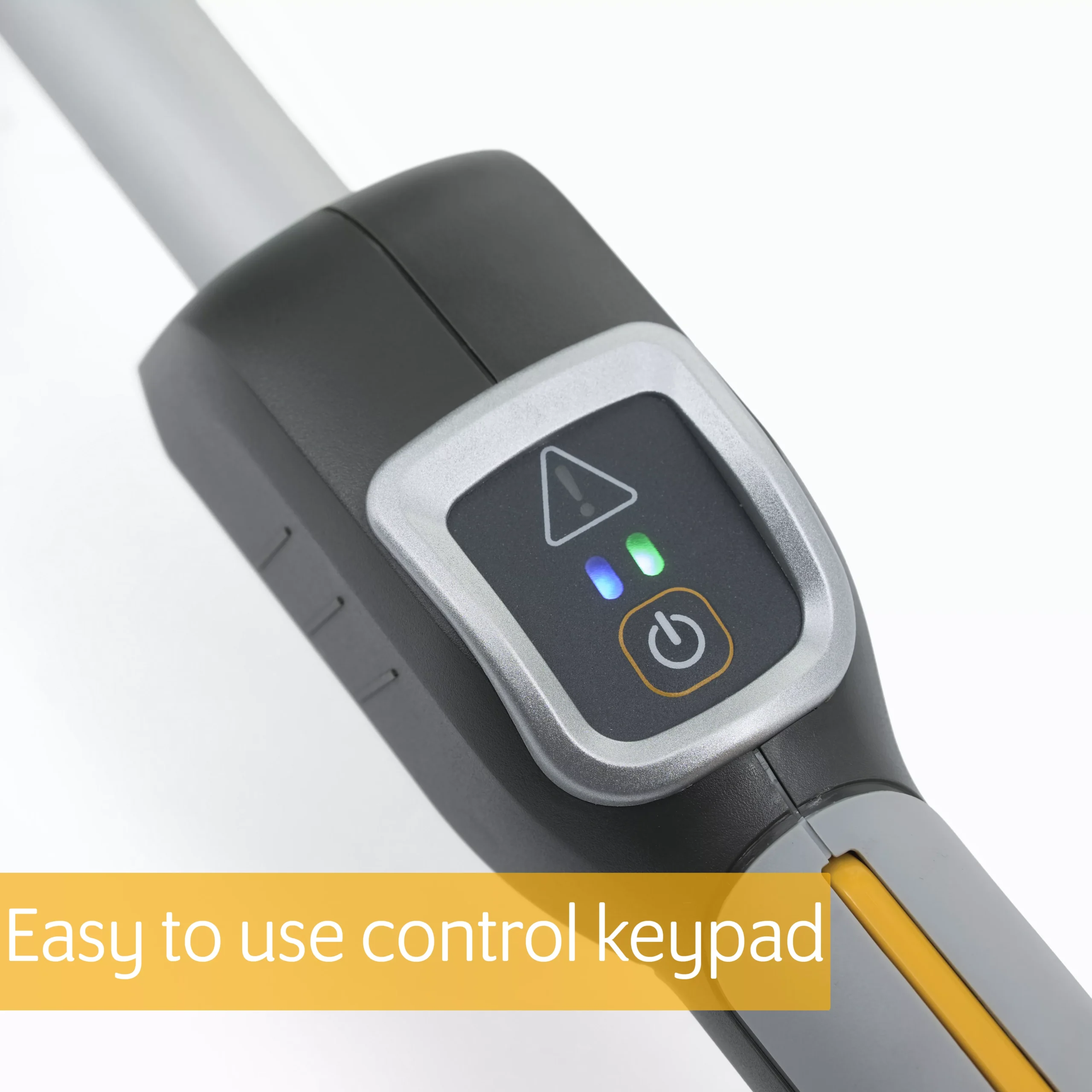 - Easy-to-use keypad on handle features ergonomic switches, with simple on/off button for safety