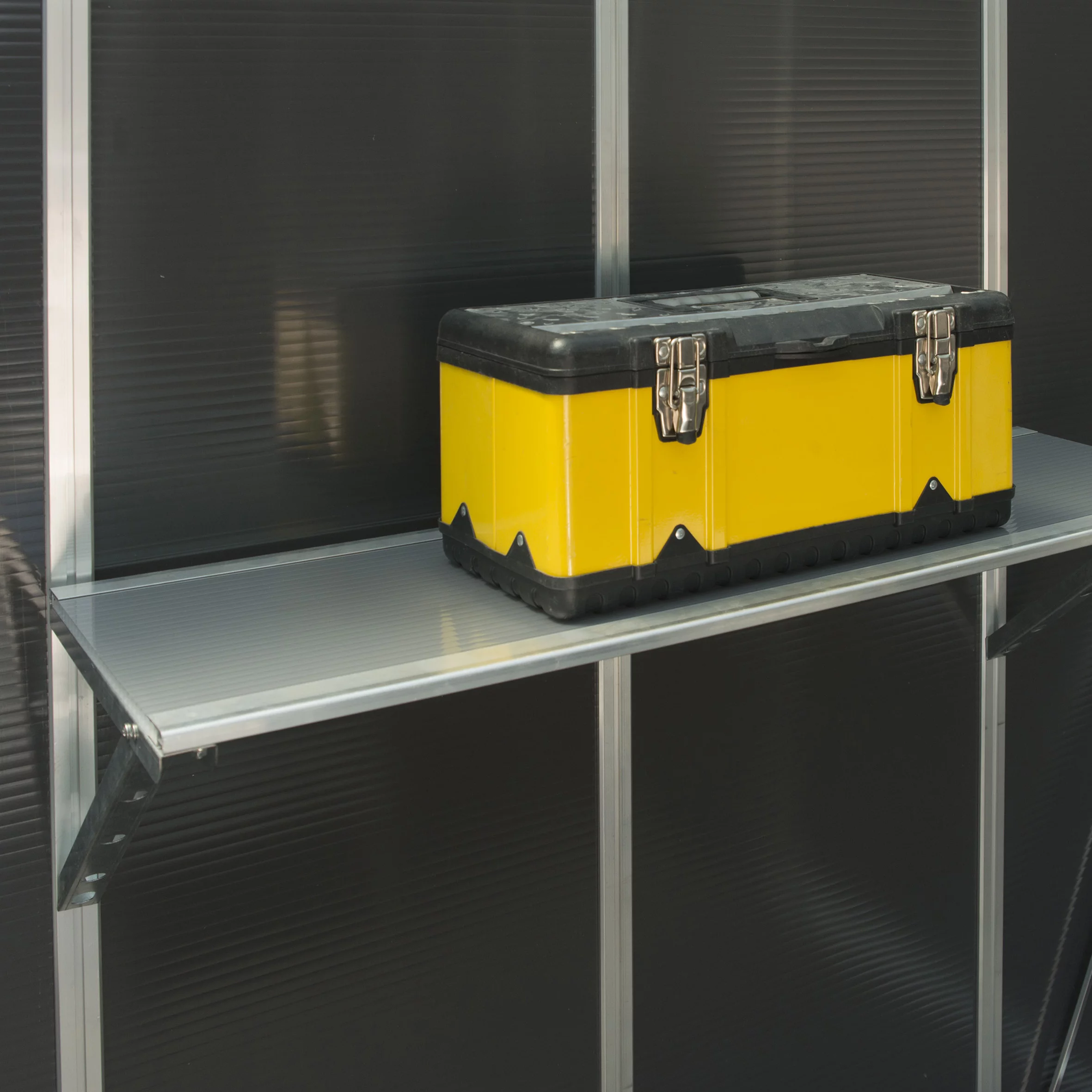 | Included | 4x polycarbonate shelf, aluminium profiles, galvanised steel brackets and hardware |